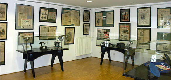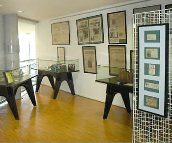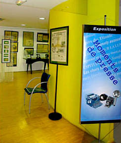 Recevant ici le ministre de la Culture et de la communication (à G.), le directeur de la Fédération nationale de la presse française (de dos), le maire de Strasbourg (à D.) et le président de la Fédération de la presse hebdomadaire régionale (de face), l'exposition a aussi été visitée par plusieurs centaines de collégiens et lycéens venus de la France entière dans le cadre du concours "Quels journaux pour demain ?"