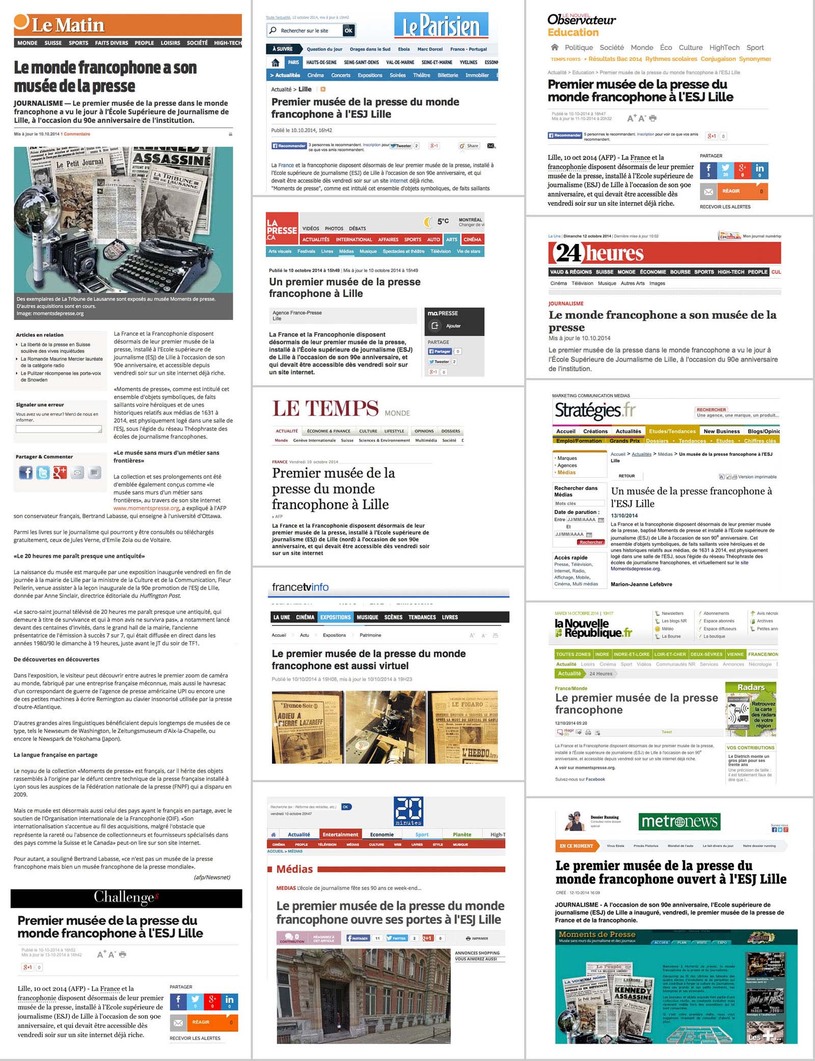 Ainsi, la collection Moments de Presse adopte-t-elle une optique résolument internationale. Ce développement est moins simple qu'il n'y paraît, notamment en raison de la difficulté de dénicher les pièces pertinentes dans certains pays, mais aussi des nombreuses homonymies de titres (La Presse ? Le Matin ?). Toutefois, l'absence de structure muséale pour la presse francophone, contrairement à ses homologues publiées ou télédiffusées dans d'autres langues, constituait un défi collectif qui devait être relevé.