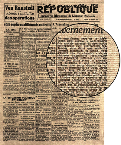 Ce n'est pas le papier qui fait le journal : bien avant d'avoir des sites Internet, les quotidiens ont parfois dû se passer de leur support traditionnel. Quand il n'y a pas de papier journal, on imprime sur ce qu'on trouve. Durant la guerre de sécession, certains journaux de Louisiane furent même imprimés au verso de rouleaux de papier peint. En France, le directeur de la Nouvelle République dut, pendant la libération, se résigner à tirer... sur du papier d'emballage. |