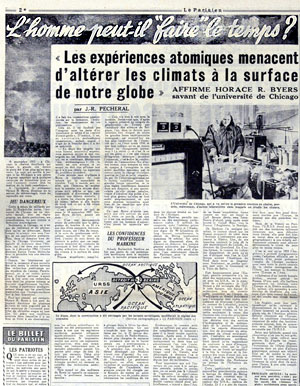 Il y a des questions que l'on sait aujourd'hui excellentes, comme cet article sur les changements climatiques induits par l'activité humaine, mais dont la réponse (à l'origine du mythe de la bombe qui "détraque le temps") est nettement plus discutable.