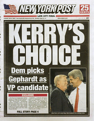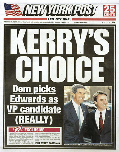 Il a confraternellement tenu à enfoncer lui-même le clou : « John Edwards sera le candidat démocrate à la vice-présidence et le Post s'est encore trompé ».