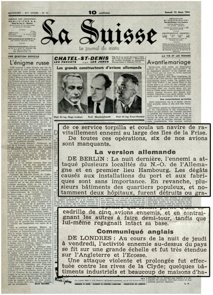 Ainsi, ces portraits des « grands constructeurs d'avions allemands » peuvent-ils surprendre alors que les bombes desdits avions avaient ravagé la moitié de l'Europe, mais le journal ne manquait pas de publier côte à côte les communiqués alliés et les déclarations allemandes. La nature de l'« ennemi » variant selon l'origine des affirmations, un peu de gymnastique mentale était nécessaire pour ne pas en perdre le fil.