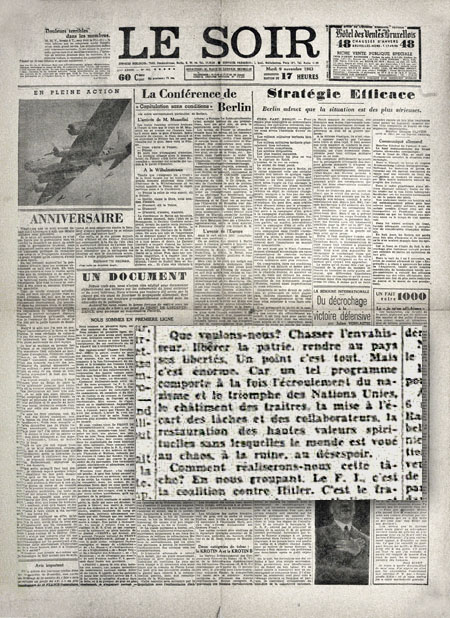 De tous les exploits de la presse clandestine, le plus grand est peut-être d'avoir réussi à diffuser des exemplaires qui n'avaient rien de clandestins. Avec une incroyable audace, les journalistes et typographes de la résistance belge ont fabriqué une fausse édition du journal Le Soir et ont réussi à la diffuser à la place de son homologue collaborationniste.