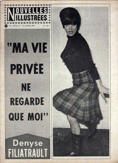PudeurIl n'est pas rare qu'une célébrité invite la presse à se mêler de ses oignons, mais il est beaucoup moins fréquent qu'un journal consacre piteusement sa une à cette rebuffade.Heureusement pour Les Nouvelles Illustrées de Montréal, toutes les personnalités n'ont apparemment pas la même conception de leur vie privée, accouchement compris. |