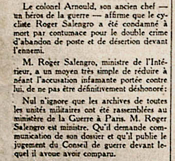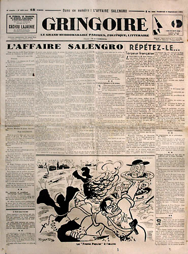 La violente campagne de l'hebdomadaire d'extrême droite Gringoire contre Roger Salengro, mensongèrement accusé d'avoir déserté pendant la première guerre mondiale ne fera pas seulement une victime mais aussi un symbole.