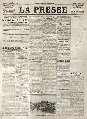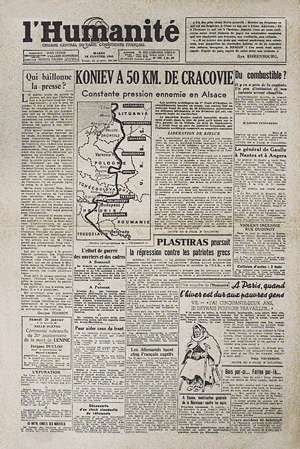 Censures Quand les temps deviennent troublés, les blancs font leur apparition dans les journaux : la censure, toujours menaçante, reprend toutes ses forces et supprime ici et là des passages, voire un article tout entier (quand ce n'est pas le journal lui-même). Il y a la censure bonhomme, qui tolère les protestations, et la censure stricte qui interdit même qu'on la mentionne. Bien malin, en tout cas, qui pourrait dire quels dangers pour la patrie présentait ce passage de l'Humanité sur le chauffage à Paris, ou, trente ans plus tôt, ce billet de La Presse dont ne reste que le surtitre. 16-01-1945