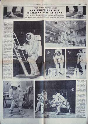 21-07-1969 Evénement Les premiers pas de l'Homme sur la lune constituent sans doute l'un des très grands événements de l'Histoire. Pourtant, tous ne l'ont pas célébré avec le même enthousiasme. En Chine, les unes des grands quotidiens ont réussi à l'ignorer purement et simplement, ce qui a dû constituer un moment assez pénible pour leurs rédactions. En U.R.S.S., la Pravda ne le mentionne qu'en pied de page, jugeant plus important un article sur l'avenir du collectivisme.